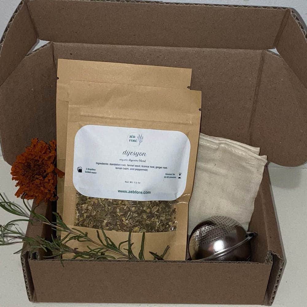 This bundle includes any two tea blends, a tea steeper, and 5 muslin tea bags.